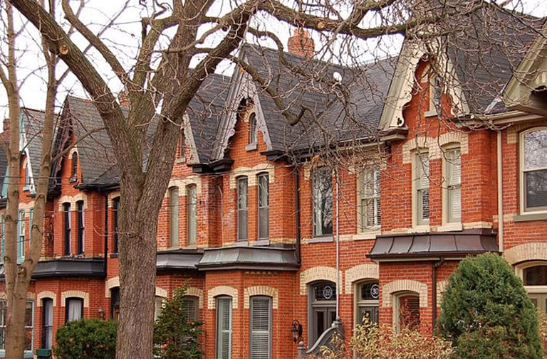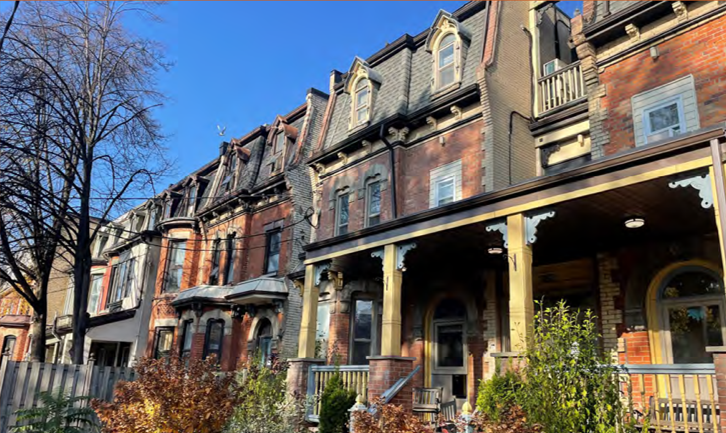 Cabbagetown Southwest, east of downtown Toronto, was developed in the late 19th and early 20th centuries. It includes residential and mixed-use areas with a high concentration of heritage resources, showcasing Toronto's early residential expansion. The neighbourhood features 2.5-storey Victorian houses on narrow lots, closely spaced with rhythmic front gables, creating a cohesive street wall and grid-like block organization, reflecting the historic socioeconomic diversity of its residents.